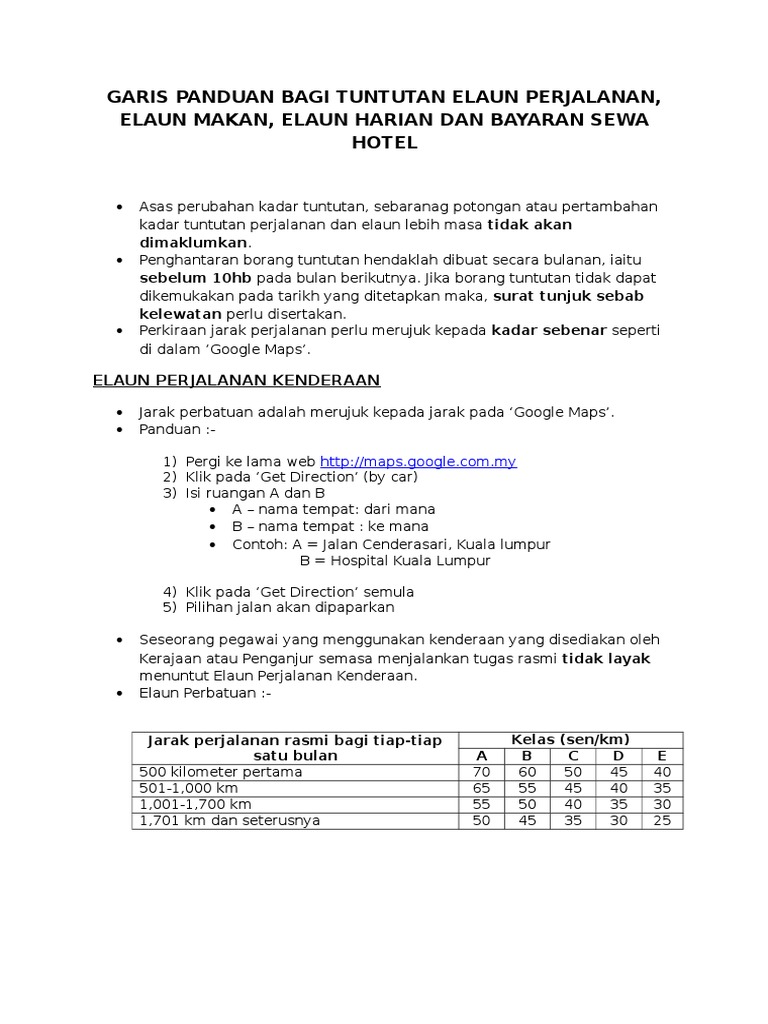 Kadar tuntututan penginapan dan makan minum berdasarkan gred jawatan akhir pesara manakala tuntutan perjalanan dibayar dengan penetapan rm0.85 bagi setiap kilo meter. Savesave borang tuntutan perjalanan 2018 for later. Kelayakan penginapan bertugas di dalam negeri. Tuntutan perjalanan kerana menjalankan tugas rasmi di dalam negeri. Tuntutan adalah terhad kepada jarak perjalanan melebihi 25 km daripada rumah kediaman ke hospital kerajaan berpakar yang dirujuk oleh hospital.